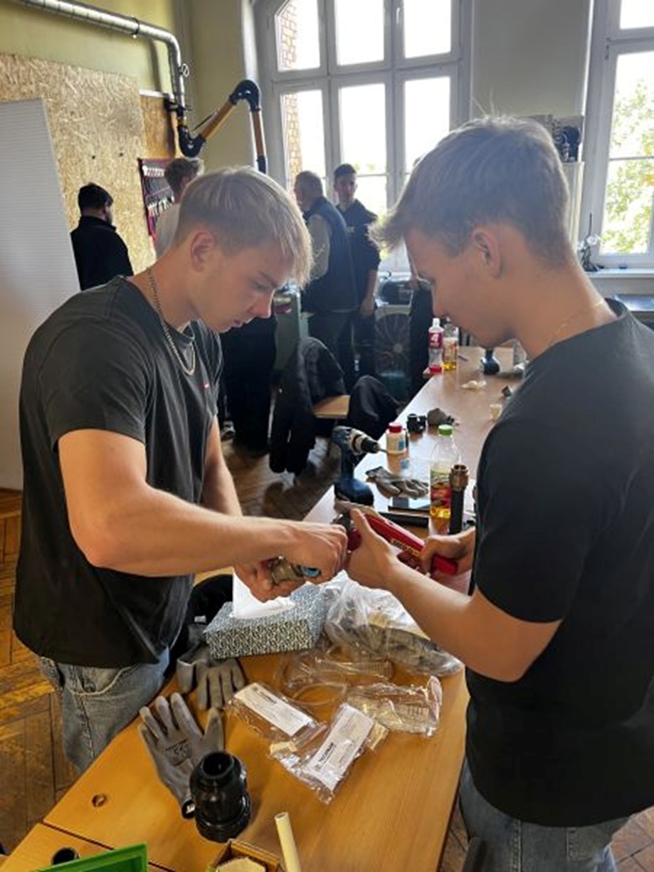 Ein Teil der Aktivitäten fand außerhalb der Schule statt – im Kreisamt für Maße und Gewichte in Wrocław sowie in der Firma Invest Park in Wałbrzych. Die Teilnehmer hatten die Gelegenheit, die Arbeit von Laboren wie dem Labor für Masse und Länge sowie dem Labor für Strömungen kennenzulernen, die erste Erfahrung mit einem industriellen Roboter zu machen sowie ihre Fähigkeiten im Schweißen an VR-Simulatoren auszuprobieren.